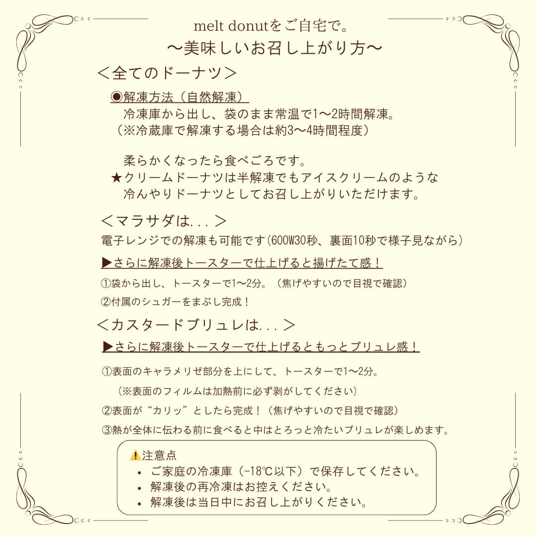 解凍後はできるだけお早めにお召し上がりください。