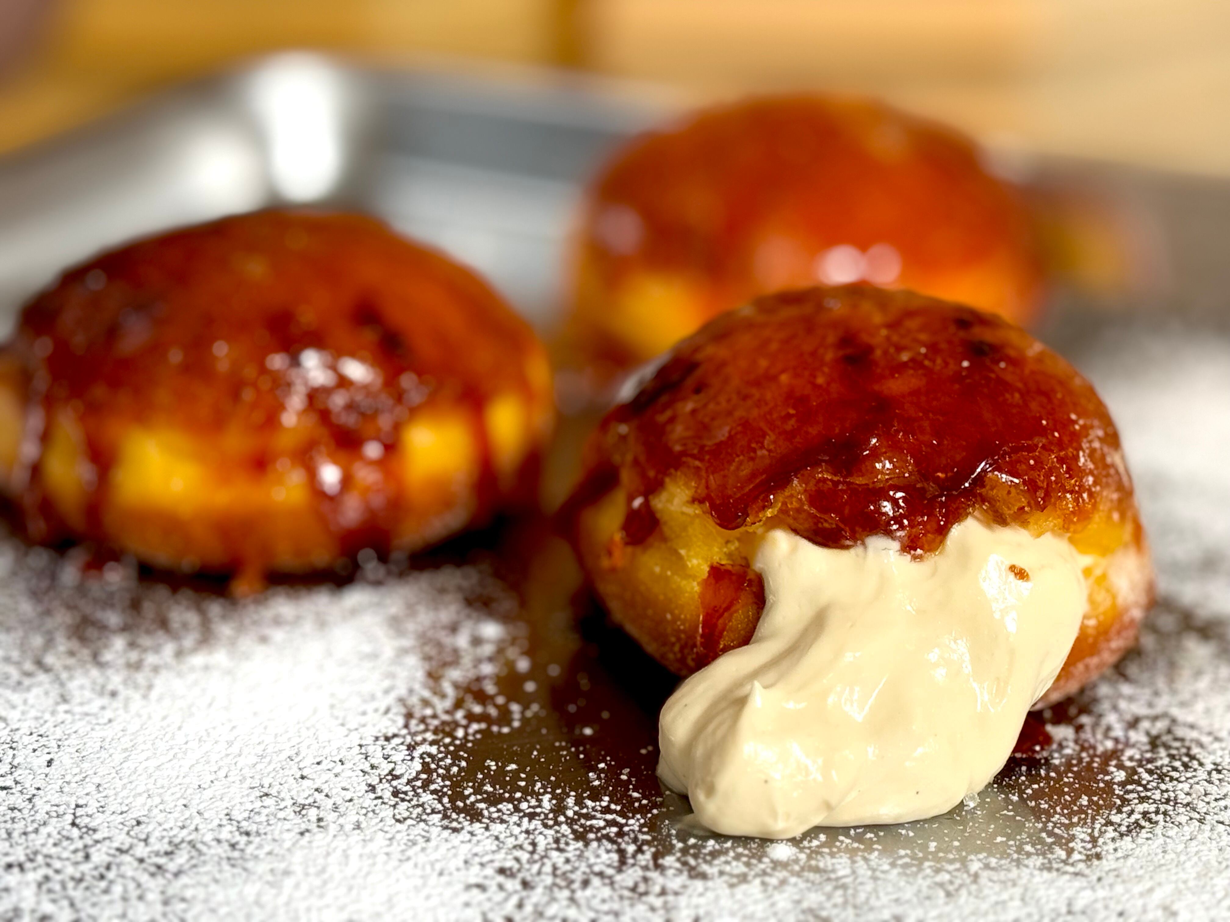手作りカスタードと生クリームを合わせたとろけるディプロマットクリームをたっぷり。