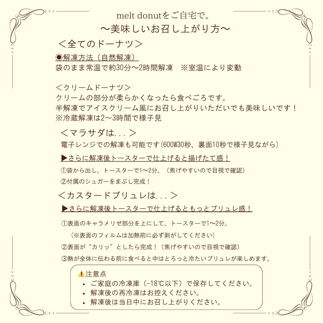 解凍後はできるだけお早めにお召し上がりください。